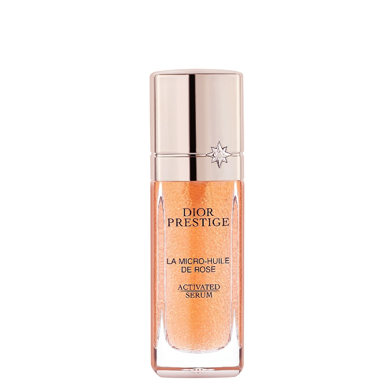 Dior Prestige La Micro - Huile De Rose  สารอาหารขนาดไมโครจิ๋ว 20 ชนิดที่จำเป็นต่อผิว รวมถึงแร่ธาตุต่างๆ เกลือแร่ โอเมก้า 3 วิตามินอี ตรงเข้าฟื้นบำรุงผิวอย่างล้ำลึก   พิเศษยิ่งกว่าคือในแต่ละขวดเต็มไปด้วยอณูแค็ปซูลทรงกลมไข่มุก หรือ Rose Micro Pearls กว่า 10,000 แค็ปซูล ซึ่งสกัดมาจากกุหลาบกรองวิลล์ ที่เป็นเอกสิทธิ์เฉพาะของ dior pretige ฟื้นบำรุงผิวให้แข็งแรง อิ่มเอิบ กระจ่างสดใส มีชีวิตชีวาอีกครั้ง