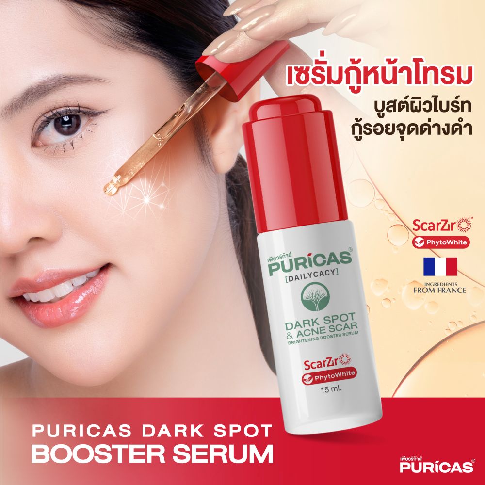 Puricas Dark Spot & Acne Scar Brightening Booster Serum 15ml, Puricas  ราคา ,Puricas  รีวิว , Puricas รอยดำ , Puricas  รอยสิว